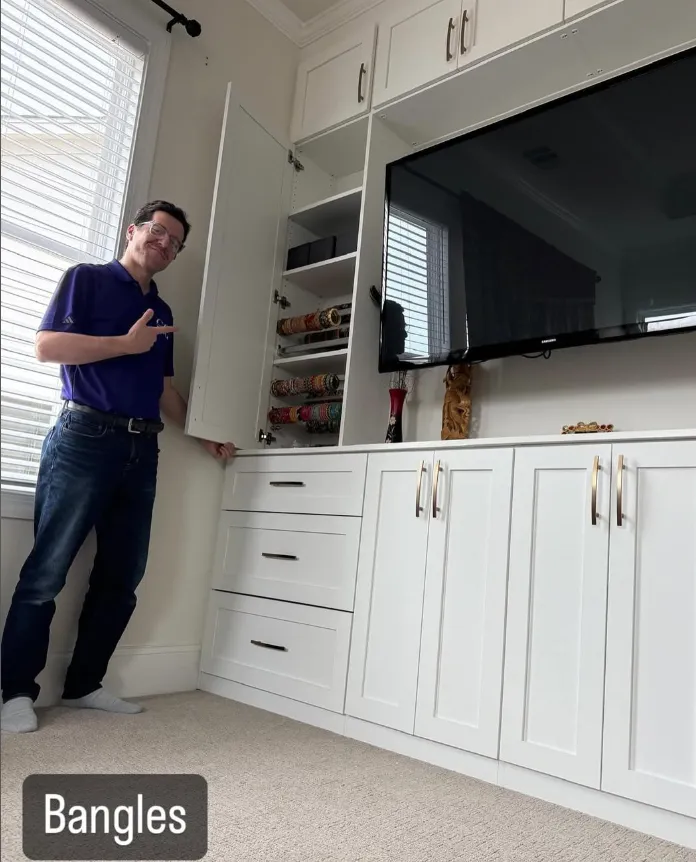 Built-to-fit shelves, drawers, and hanging zones create a place for everything. We measure, design, and install custom closets that make mornings effortless.